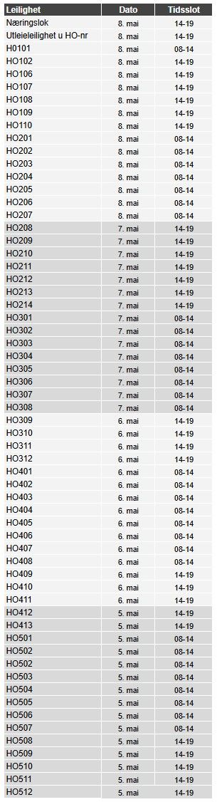 Hei! 05. mai vil Inselo med Lyn Elektro starte installasjon av nytt fiber basert internett fra Telenor i leilighetene. For å få installert må vi inn i alle leiligheter for å trekke fiberkabler og sette opp nytt utstyr. Vi kan ikke si nøyaktig når vi er hos hver enkelt, men noen må enten være hjemme i angitt tidsslott (se nedenfor), eller sørge for at vi får tilgang til nøkkel. Nedenfor står det hvilke dag og tidsrom vi vil komme til din etasje. Dette er oppmøtetider, installasjonen tar ca 1 time. Se vanlige spørsmål og svar nederst på siden. Vi ser frem til å hjelpe deg! Vennlig hilsen Inselo & Lyn Elektro